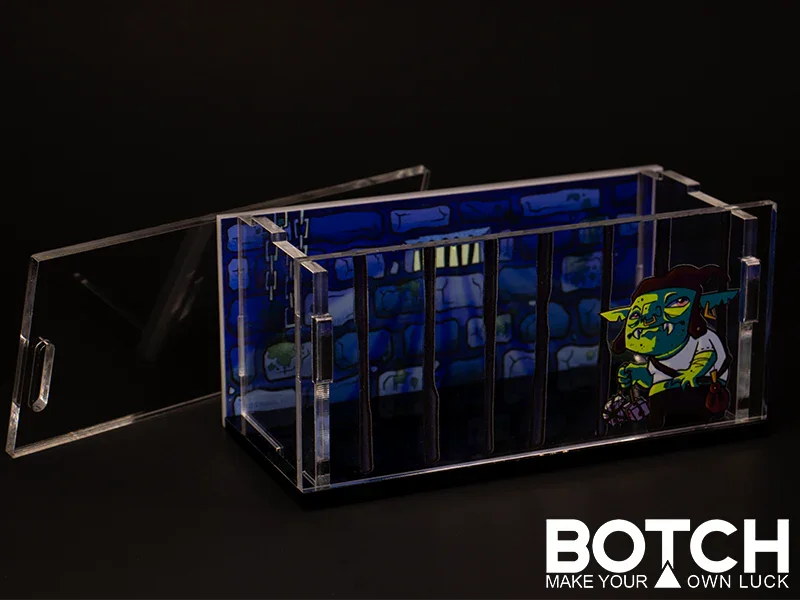 A Dice jail styled case to hold your dice. Featuring Botchy.