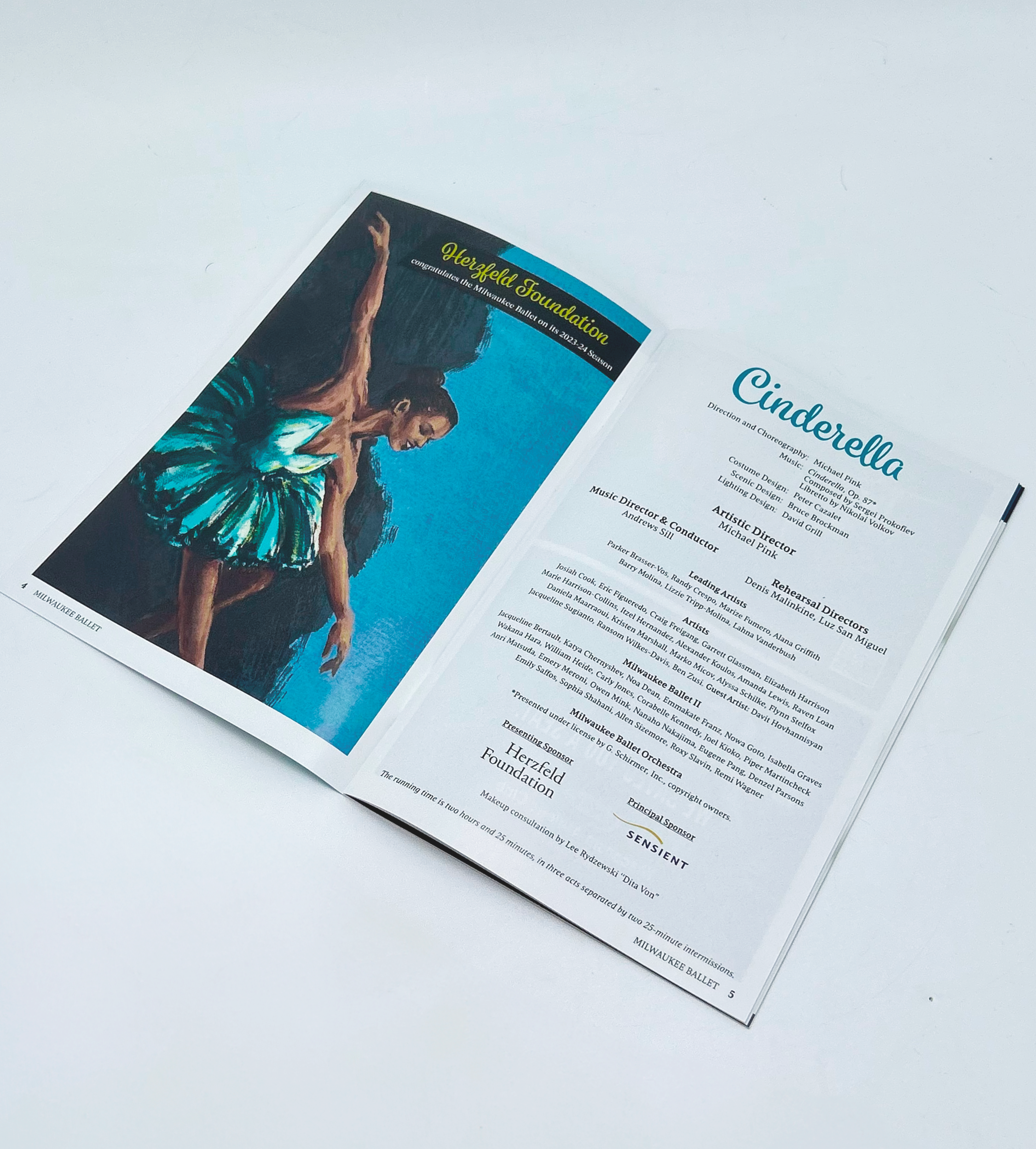 For this project I was created an ad featured in Milwaukee Ballet’s Cinderella program for the Herzfeld Foundation. The Herzfeld Foundation makes grants in the areas of Arts & Culture, Education, and Civic Improvements to Wisconsin-based organizations.